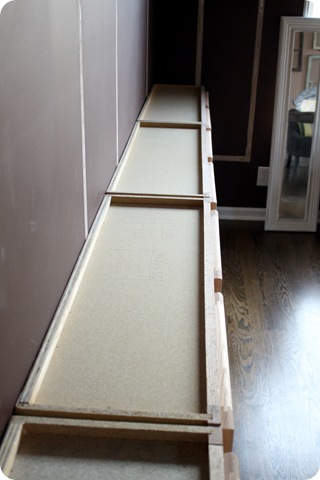 The plan called for a wall of floor to ceiling bookcases, and I knew I wanted to make them like we did in the Bub’s room:
